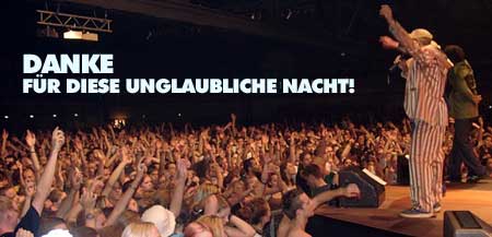 Hab dank eifrigen Schwarzmarkt-Verkäufern doch noch ne Karte gekriegt, aber das war es definitiv Wert. 4 Stunden Dancehall-Party vom feinsten. Erst hat Gentleman Murder-Party gemacht, fast besser als Seeed und dann gings richtig los. Zum Schluss nochmal alle zusammen mit alten Klassikern. Wahnsinn.